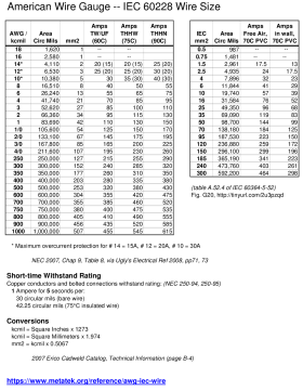 | IEC Wire Sizes mm2 Area | Area Circular Mils | Amperes | |